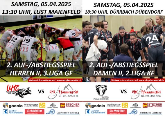 Das Damen 2 spielt dabei am Samstag, 05.04.2025 um 18:30 Uhr in der MZH Dürrbach in Dübendorf und im Falle eines Sieges folgt tags darauf am Sonntag, 06.04.2025 um 13:00 Uhr in der 3-fach Kirchwies in Egg das Entscheidungsspiel gegen die Glattal Falcons.